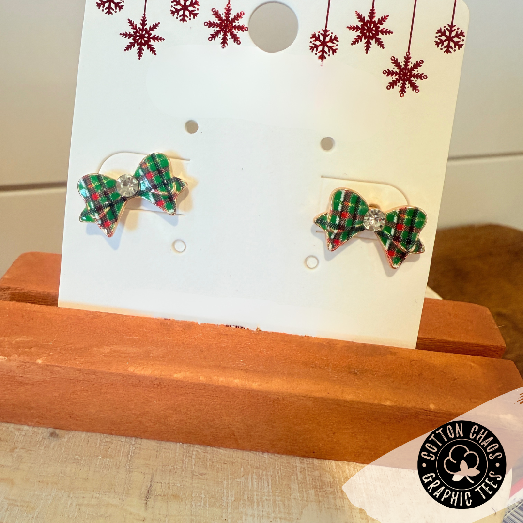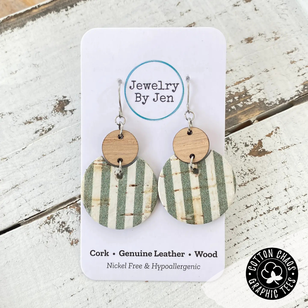 Wood Cutout Rectangle & Army Green Rounded Square Earrings