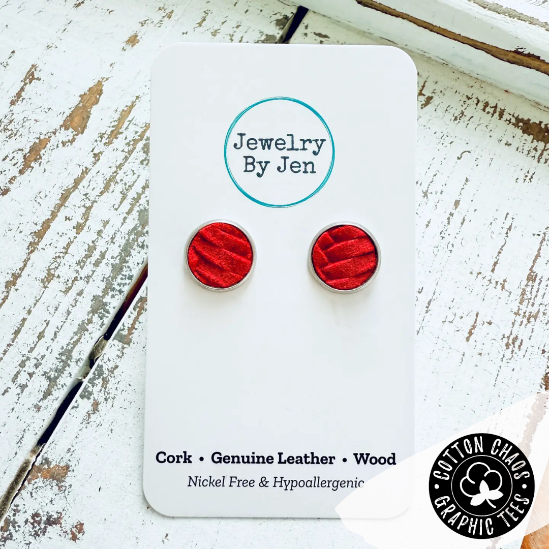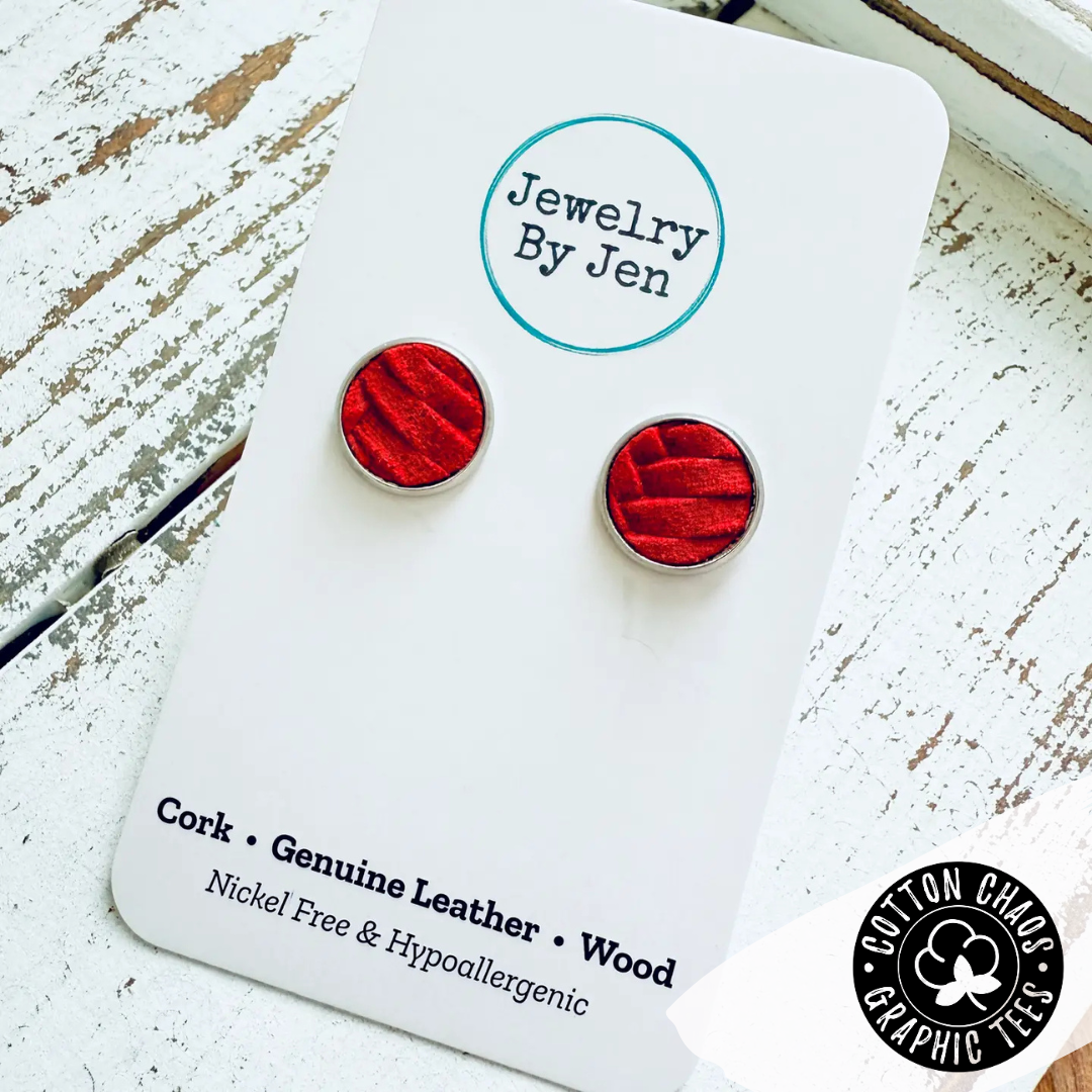 Chic, bold, and easy to wear — these Red Leather Braided Studs add a stylish pop of color to any outfit. Made with a genuine leather braided inlay set inside a 12mm stainless steel setting, they’re lightweight, modern, and perfect for everyday wear.