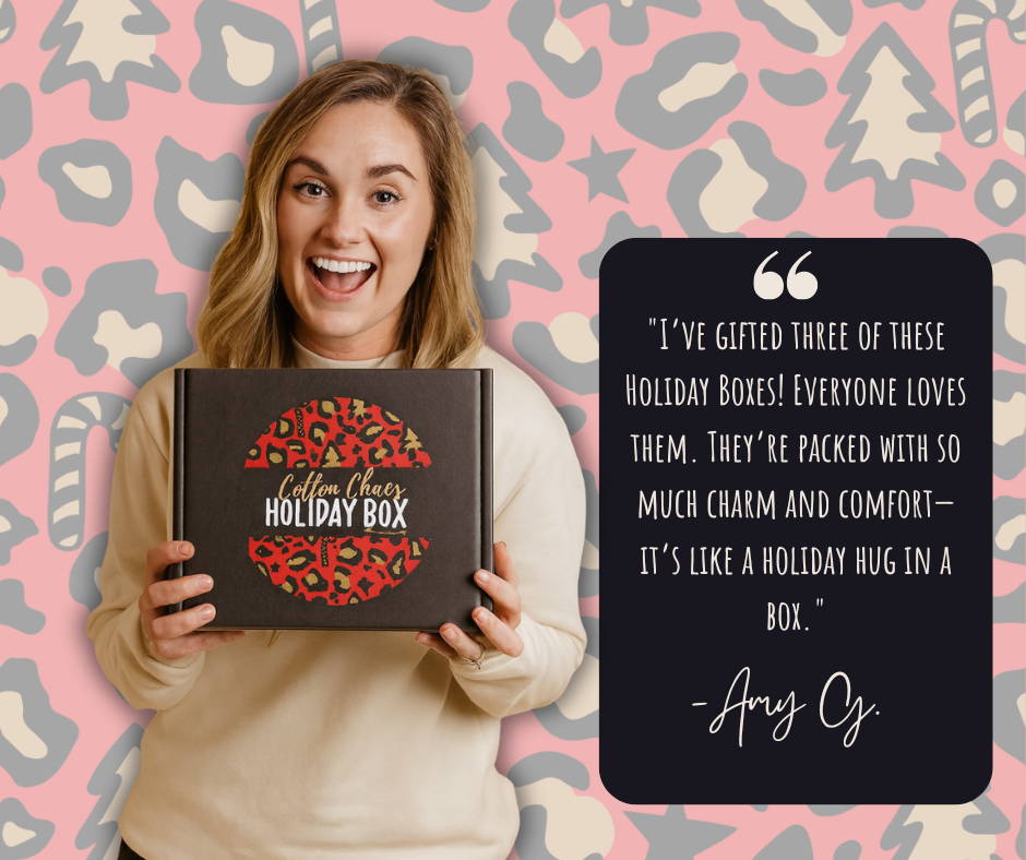 Introducing our Comfy & Cozy Holiday Box - the perfect gift for yourself or a loved one this holiday season! Designed to wrap you in warmth and comfort, this exclusive mystery box is filled with handpicked goodies that will make this extra special.